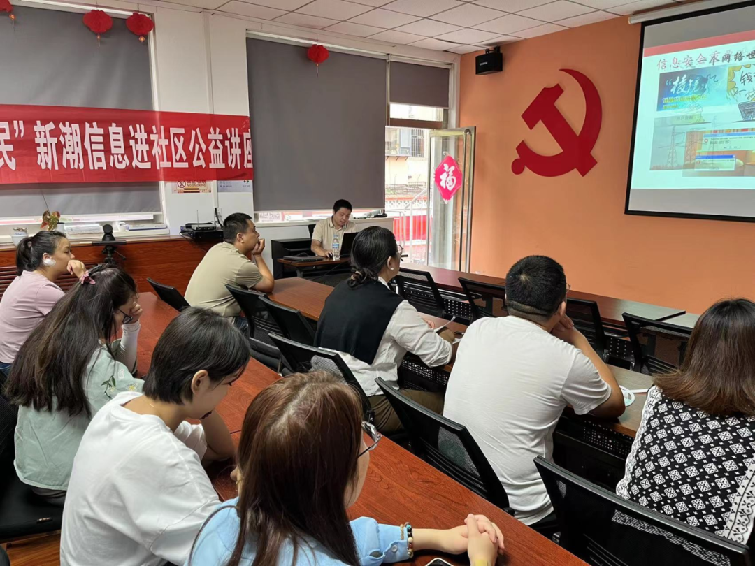 為增強社區(qū)居民的網(wǎng)絡(luò)安全意識和防范能力,預(yù)防網(wǎng)絡(luò)詐騙帶來的經(jīng)濟損失,營造安全、健康、文明的網(wǎng)絡(luò)環(huán)境。山東新潮信息黨支部在國家網(wǎng)絡(luò)安全宣傳周之際,走進(jìn)社區(qū)開展以“網(wǎng)絡(luò)安全為人民,網(wǎng)絡(luò)安全靠人民”為主題的公益講座。