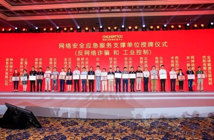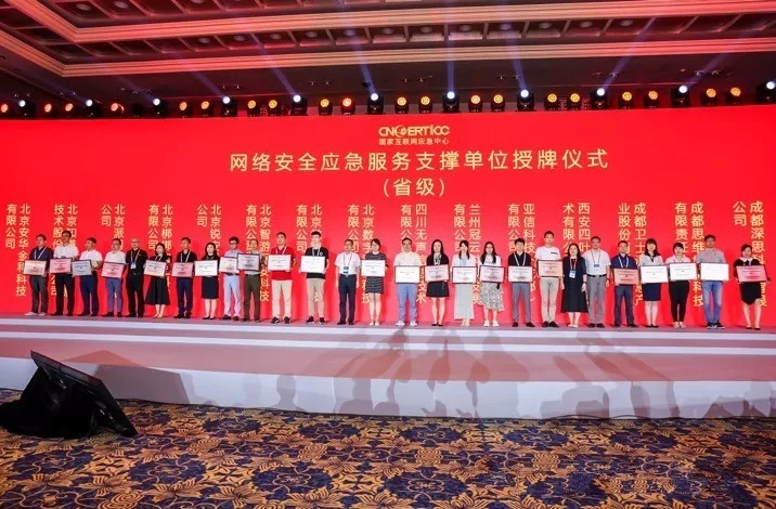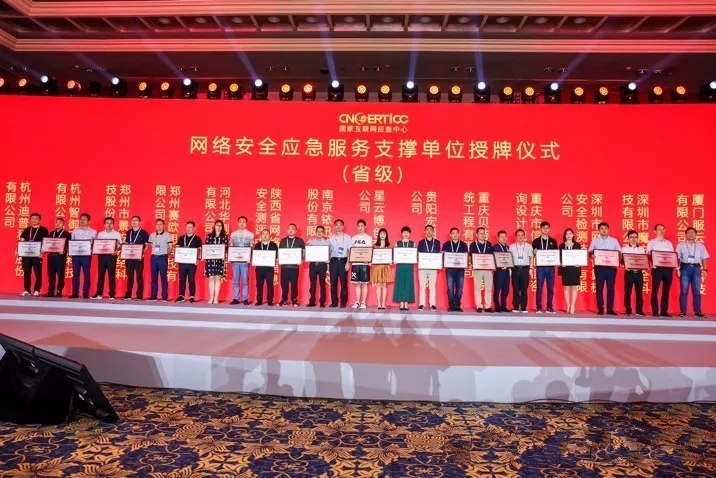2019年7月17日下午,國家互聯網應急中心(CNCERT)在2019年中國網絡安全年會上舉行了第八屆網絡安全應急服務支撐單位授牌儀式,為103個支撐單位授牌。